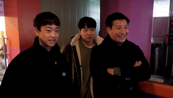 그는 두 아들과 볼링장,