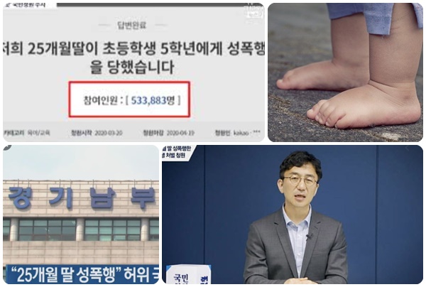 25개월 된 딸이 초등학교 5학년생으로부터 성폭행을 당했다며 해당 학생과 부모의 처벌을 촉구하는 국민청원은 허위로 작성된 것